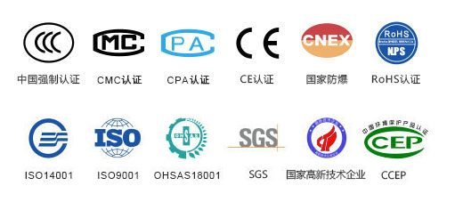 ☆ 雙防爆認證、CPA認證、鹽霧認證、防護IP68認證、ROSH、CE、CNAS計量認證。